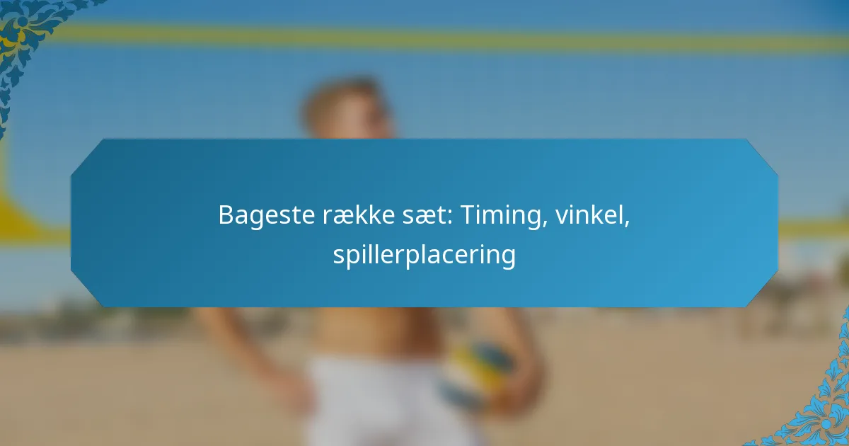 Et baglinjeset i volleyball er et strategisk spil udført af en spiller, der er placeret bag angrebslinjen, hvilket gør det muligt for baglinjespillere at bidrage til offensive handlinger. En vellykket udførelse afhænger af præcis timing og koordinering med holdkammeraterne, så bolden leveres på det optimale tidspunkt. Ideelle vinkler for sættet, typisk mellem 45 og 60 grader, forbedrer boldens bane og letter effektiv positionering af angriberen, hvilket maksimerer scoringsmulighederne.