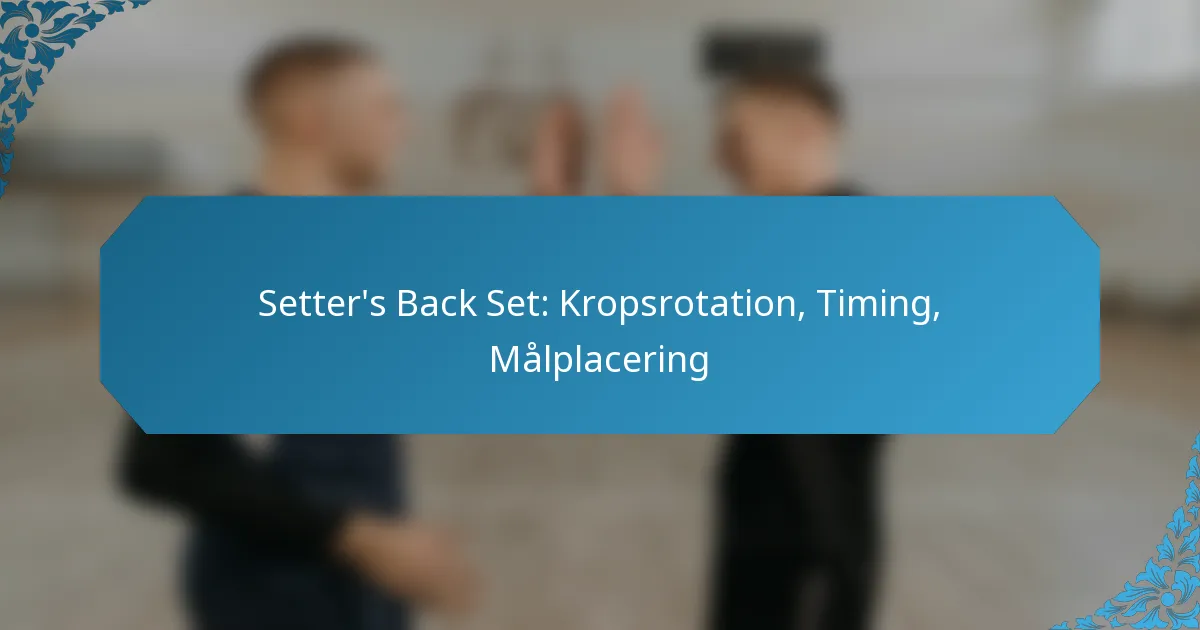 En setters bag-sæt er en vigtig teknik i volleyball, der muliggør et hurtigt og vildledende angreb ved at levere bolden bag deres krop. At mestre denne færdighed kræver præcis kropsrotation og timing, som er essentielle for at sikre, at bolden placeres korrekt til angriberens optimale slag. Korrekt udførelse giver øget kraft og præcision, hvilket gør det til en nøglekomponent i effektiv offensiv spil.