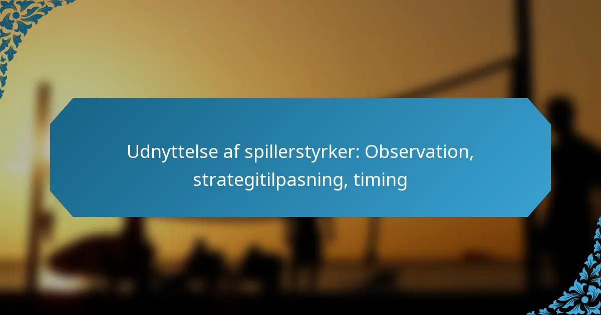 At udnytte spilleres styrker er afgørende for at forbedre holdets præstation, hvilket kræver effektive observationsmetoder til at vurdere individuelle færdigheder under træning og spil. Ved at tilpasse strategier til at udnytte disse styrker kan trænere tilpasse spilleplaner til hver spillers unikke evner. Derudover kan det at genkende det optimale tidspunkt for at anvende disse styrker i nøgleøjeblikke i en kamp betydeligt forstærke en spillers indflydelse på banen.